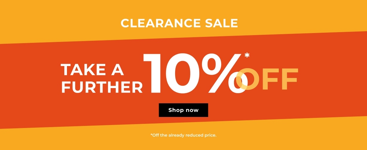 *Take A Further 10% Off Clearance applies to Clearance Items only. Discount will apply in cart. Not to be used in conjunction with any other offer. Available while stocks last. Designs, sizes and colours available may vary between stores and online.